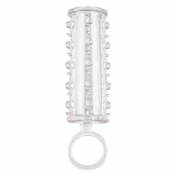The Sensation Enhancer is a super tight, open-end extension sleeve with a sensually beaded shaft. The super-sized enhancer wraps tight around your pleasure tool to increase girth, length and pleasure.