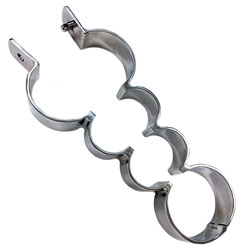 Solid heavy metal wrist and ankle binder to hold your submissive exactly where you want them. The ankle rings have a diameter of 3.5 inches and the wrist 2.4 inches. A key and padlock are included but you can use your own if needs be.
