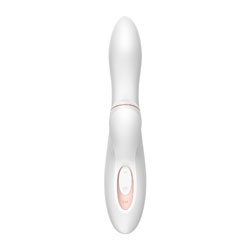 Meanwhile, the clitoral stimulator caresses your love bead with sensual pressure wave stimulation. The round silicone attachment encircles your clitoris as you are brought to a touch-free climax. This gives you a sensation similar to that of oral stimulation rapid change between suction and pressure is available in 11 intensities simply use the intuitive controls to switch up and down between settings. A third button controls the vibration setting, enabling countless seductive combinations of settings. The Satisfyer Pro G-Spot is also extremely quiet, although it may well coax a few noises out of you! The waterproof finish means that it is also the ideal bathing companion, inviting you to enjoy sensual pleasures in the shower or bath.